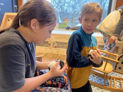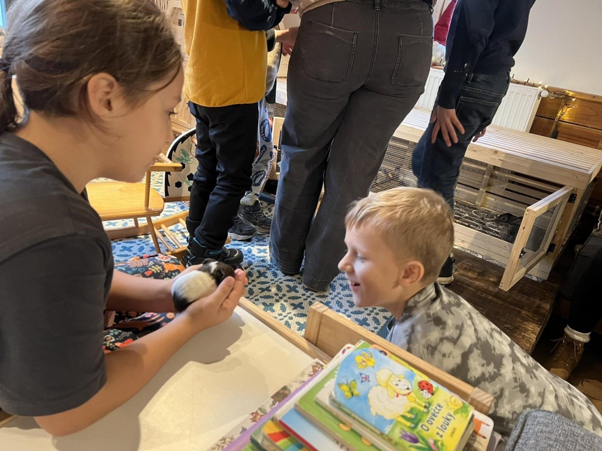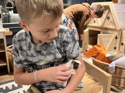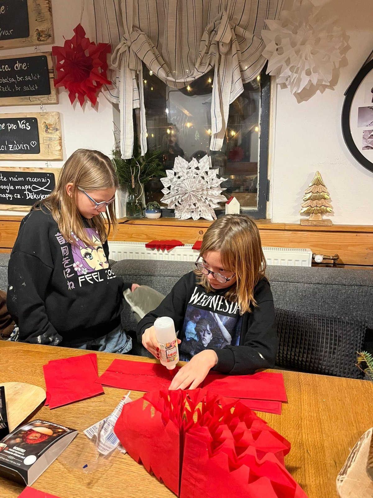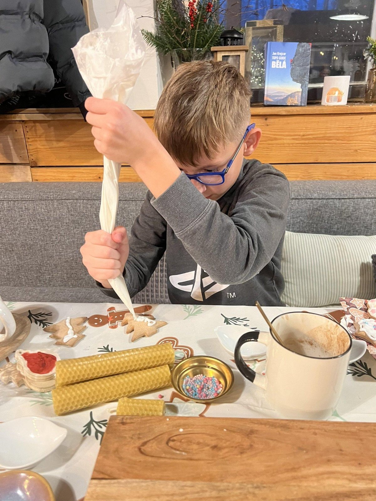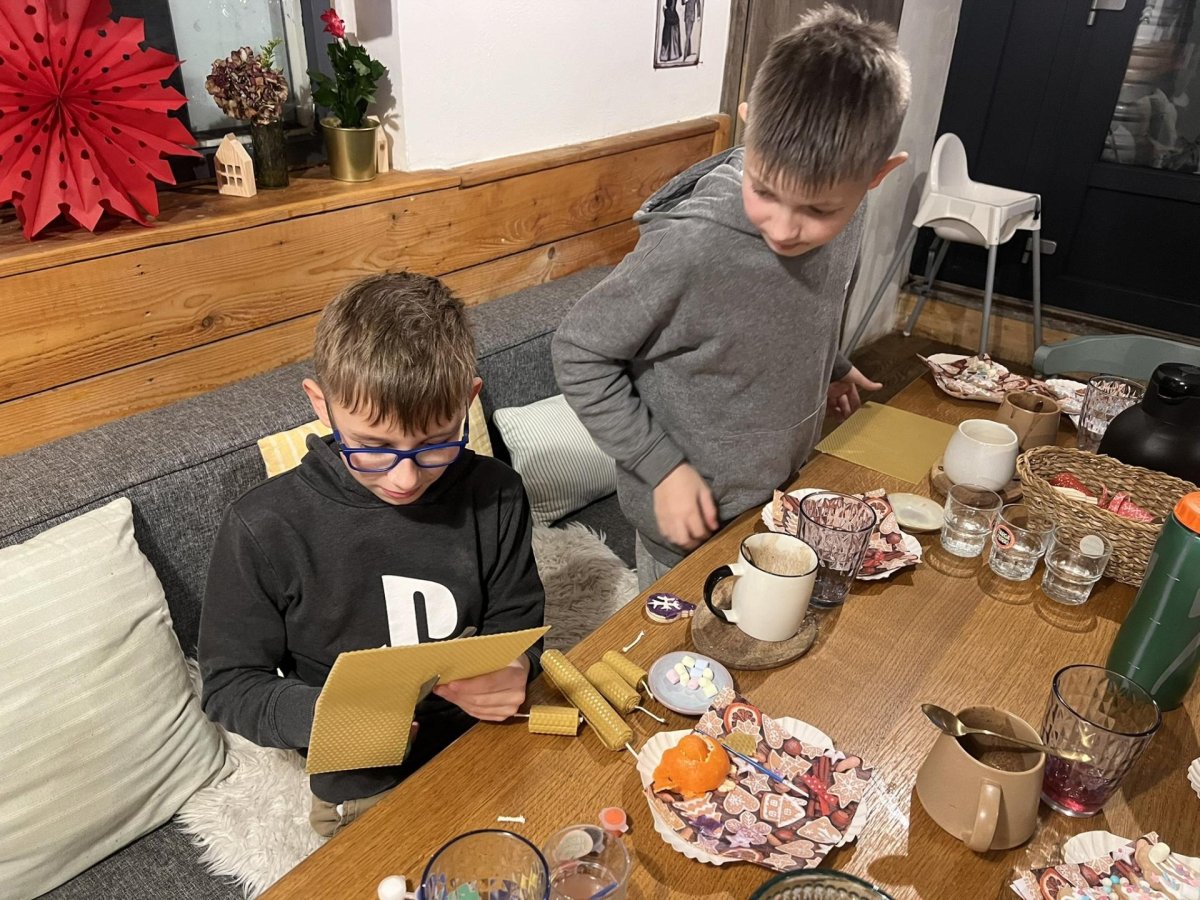 Tam byl pro děti připraven nádherný vánoční workshop, při kterém si vyrobily svíčky ze včelího vosku, vánoční hvězdy z papíru, ozdobily si perníčky a nechyběly ani perníkové chaloupky. Během přestávek od tvoření si děti mohly pomazlit zvířátka všeho druhu – od malých morčátek, králíčků a činčil až po venkovní zvířata, jako jsou kozy či poníci.