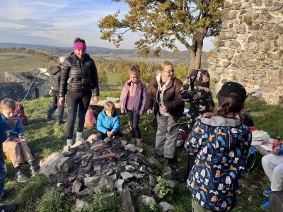 Po obědě se sešly děti napříč 1. stupněm a společně vyrazily na túru na hrad Blansko. Na hradě jsme si dali za odměnu sladké dýňové koláčky, opekli buřtíky a poté jsme vyrazili zpět domů.