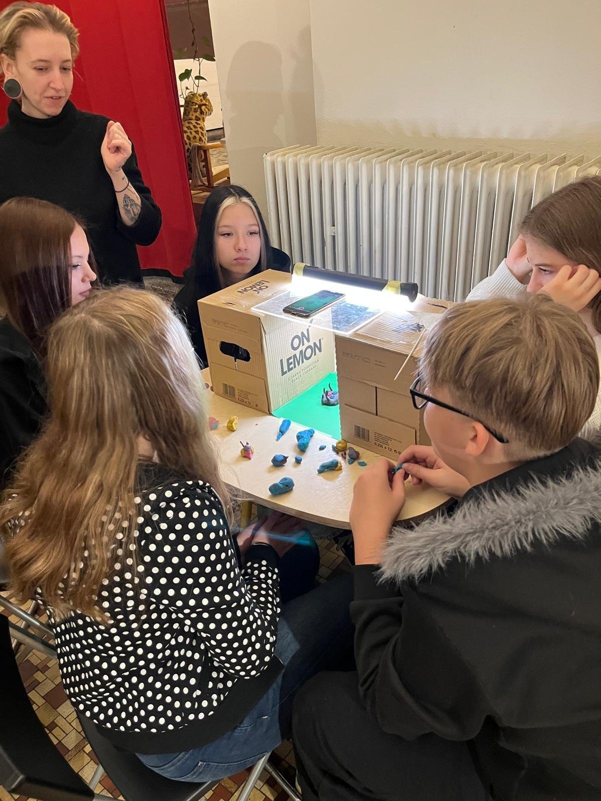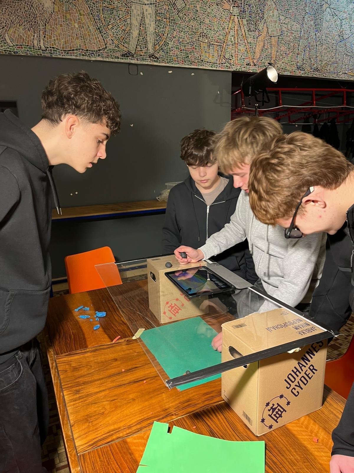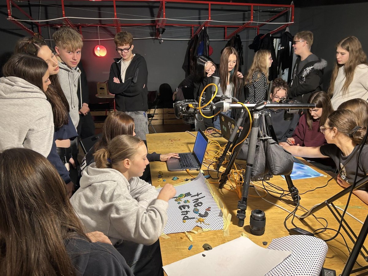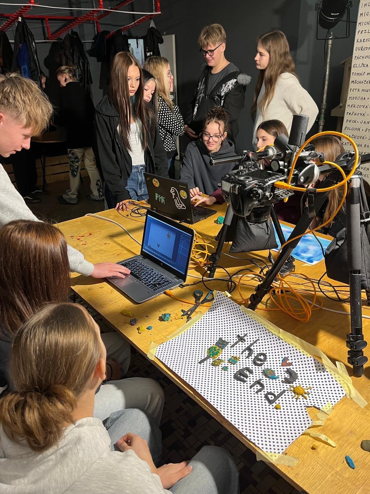 Žáci 8.B prožili pestrý a tvořivý den plný objevování, týmové spolupráce a zážitků mimo školní lavice. Program začal workshopem Stop Motion animace, během kterého byli žáci rozděleni do pěti skupin. Každý tým si připravil vlastní krátkou animaci – od prvního nápadu, přes stavbu scény až po samotné snímání jednotlivých obrázků. Všichni si tak vyzkoušeli, jak vzniká filmový pohyb a kolik práce se skrývá za několika sekundami animace.