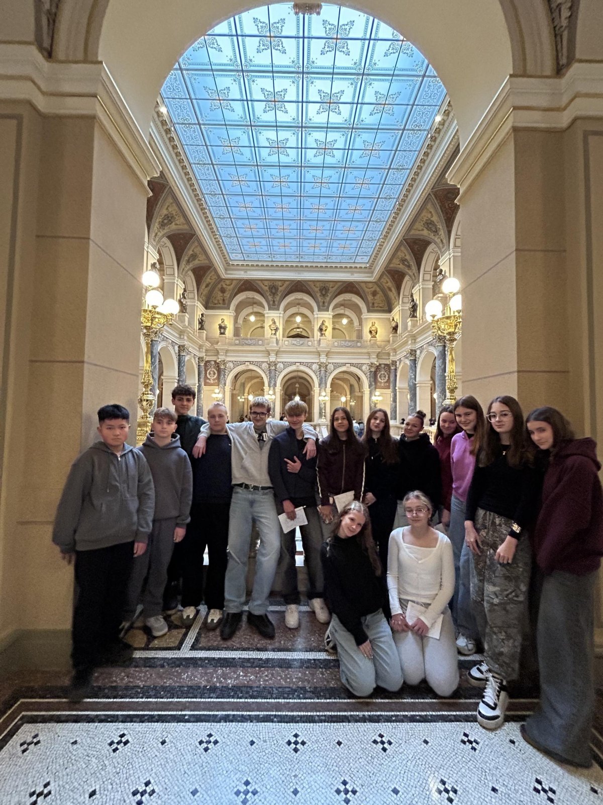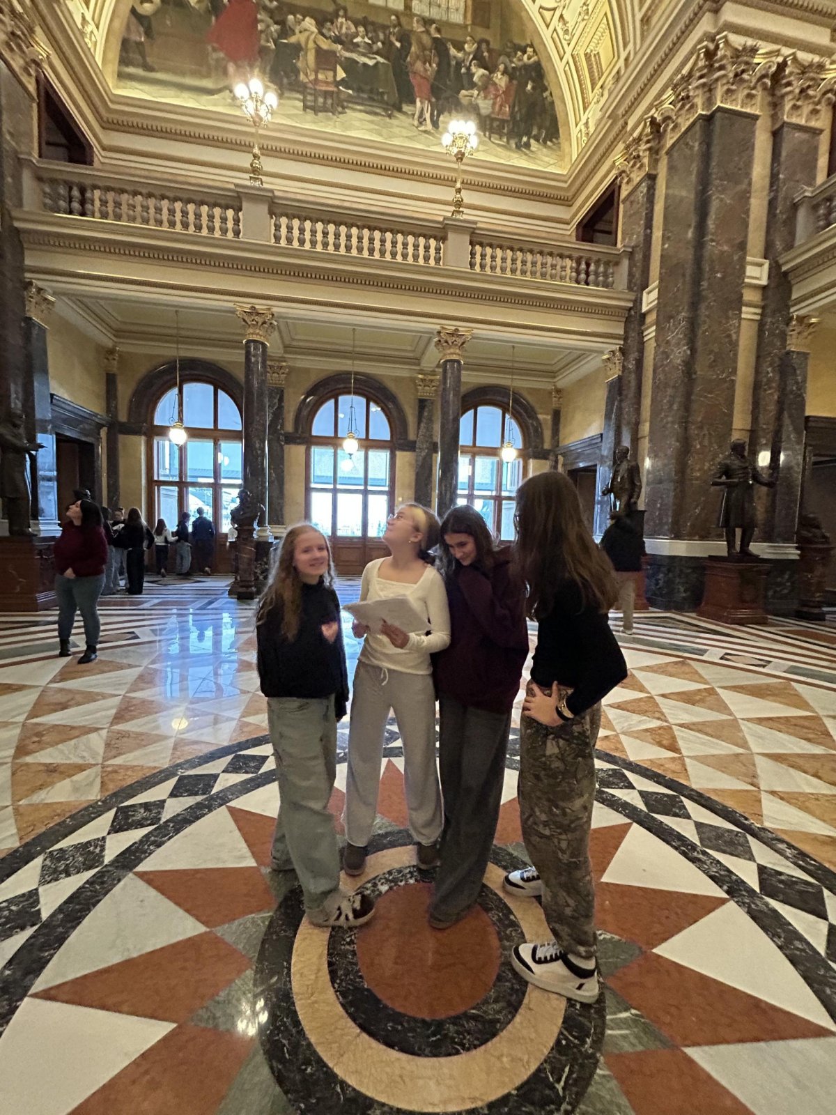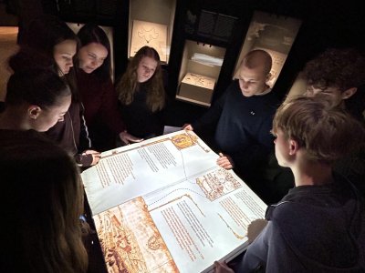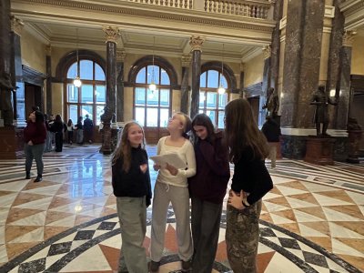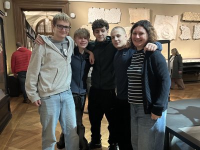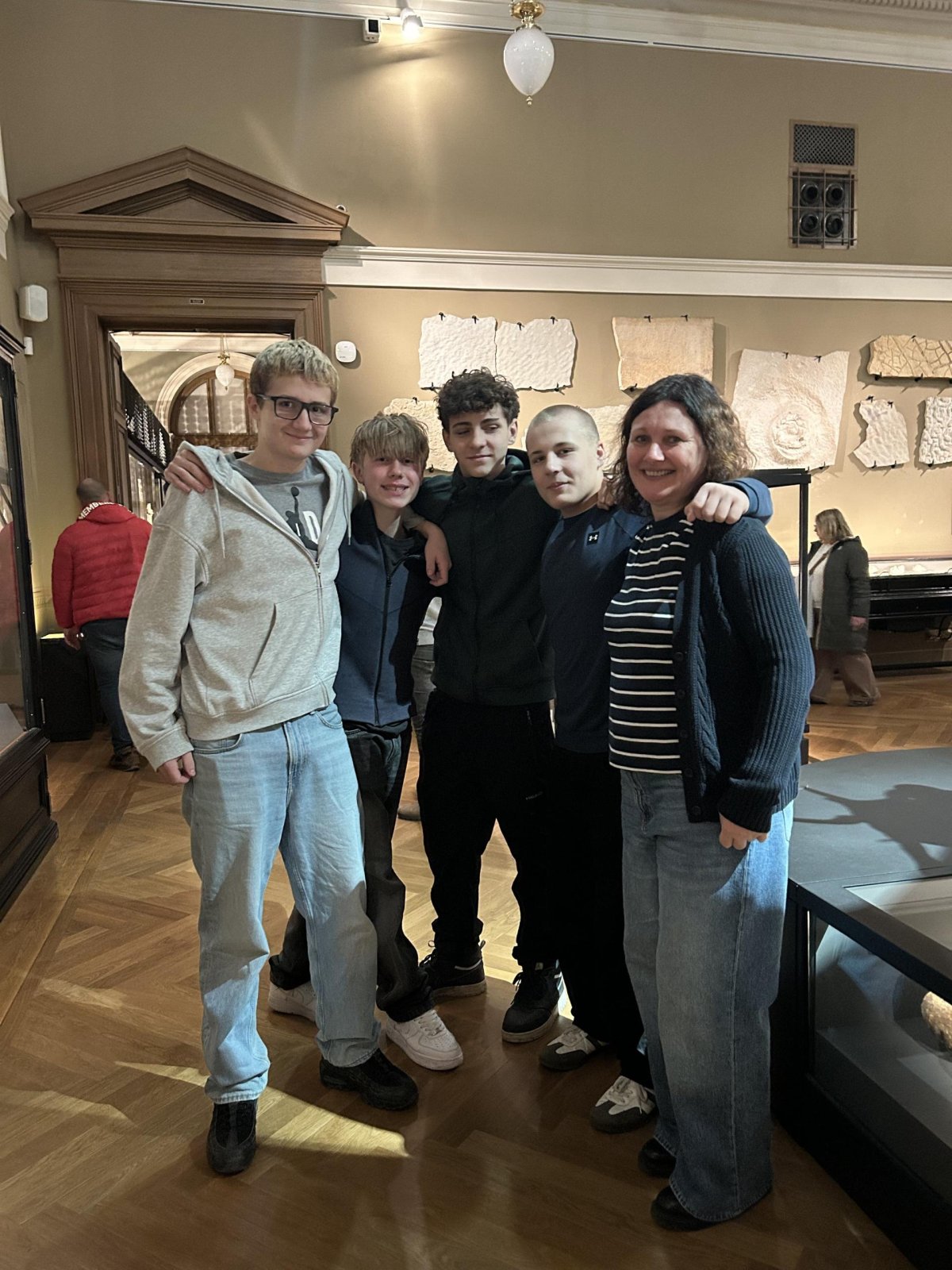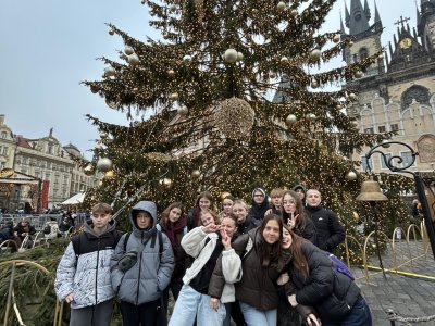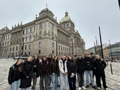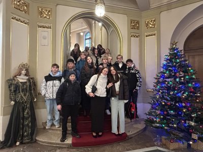 O týden později jsme se vypravili do Prahy. V Národním muzeu jsme si detailně prohlédli Pantheon, prošli expozici věnovanou budovám muzea a obdivovali pestrou sbírku minerálů. Poté jsme se prošli centrem města a nasáli předvánoční atmosféru na Staroměstském náměstí, kde nás zaujaly vánoční trhy, vůně dobrot i zářivá výzdoba.