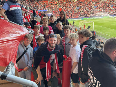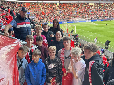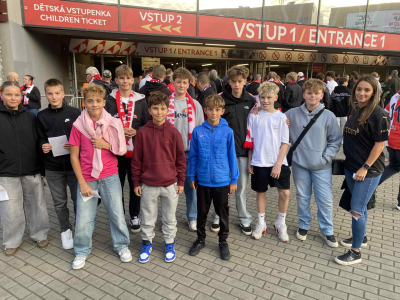 Jedenáct žáků z různých tříd druhého stupně vyrazilo společně s několika pedagogy do Edenu, kde utkání sledovali přímo z legendární Tribuny Sever. Zápas byl od samého začátku úžasný, choreografie domácích fanoušků ve spojení s vyprodaným stadionem vytvořily atmosféru, na kterou se nezapomíná.
