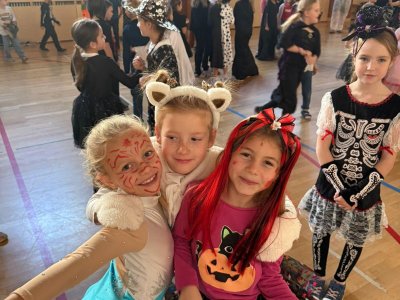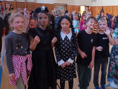 V pátek 7.11. jsme měli ve školní družině strašidelný rej. Družina se proměnila v doupě pavouků, netopýrů, duchů a strašidelných dýní. Všechna strašidla, a že jich bylo dost, musela prolézt strašidelným hradem do tělocvičny, kde byly připraveny různé taneční hry a soutěže. Odpoledne jsme si moc užili.