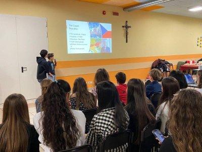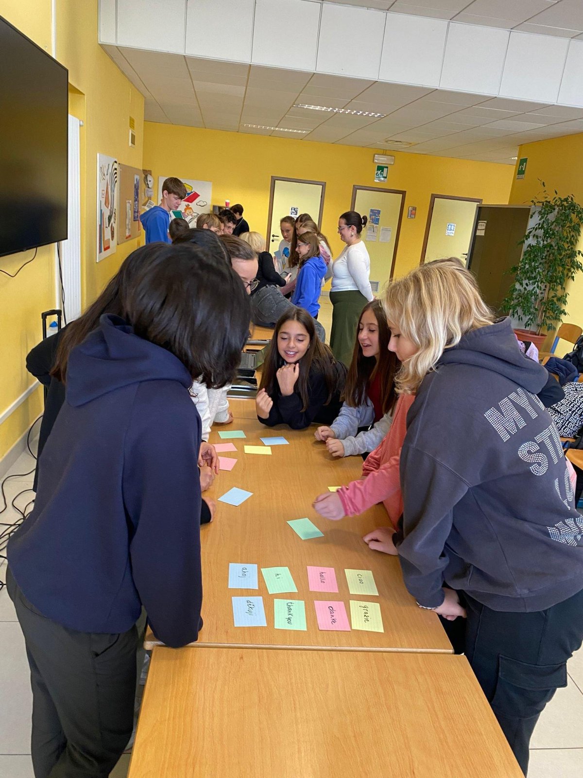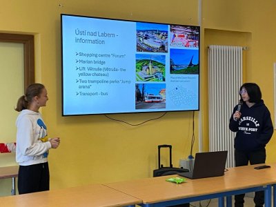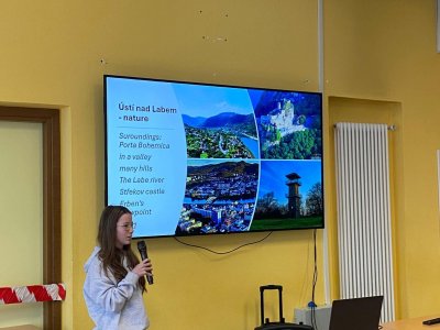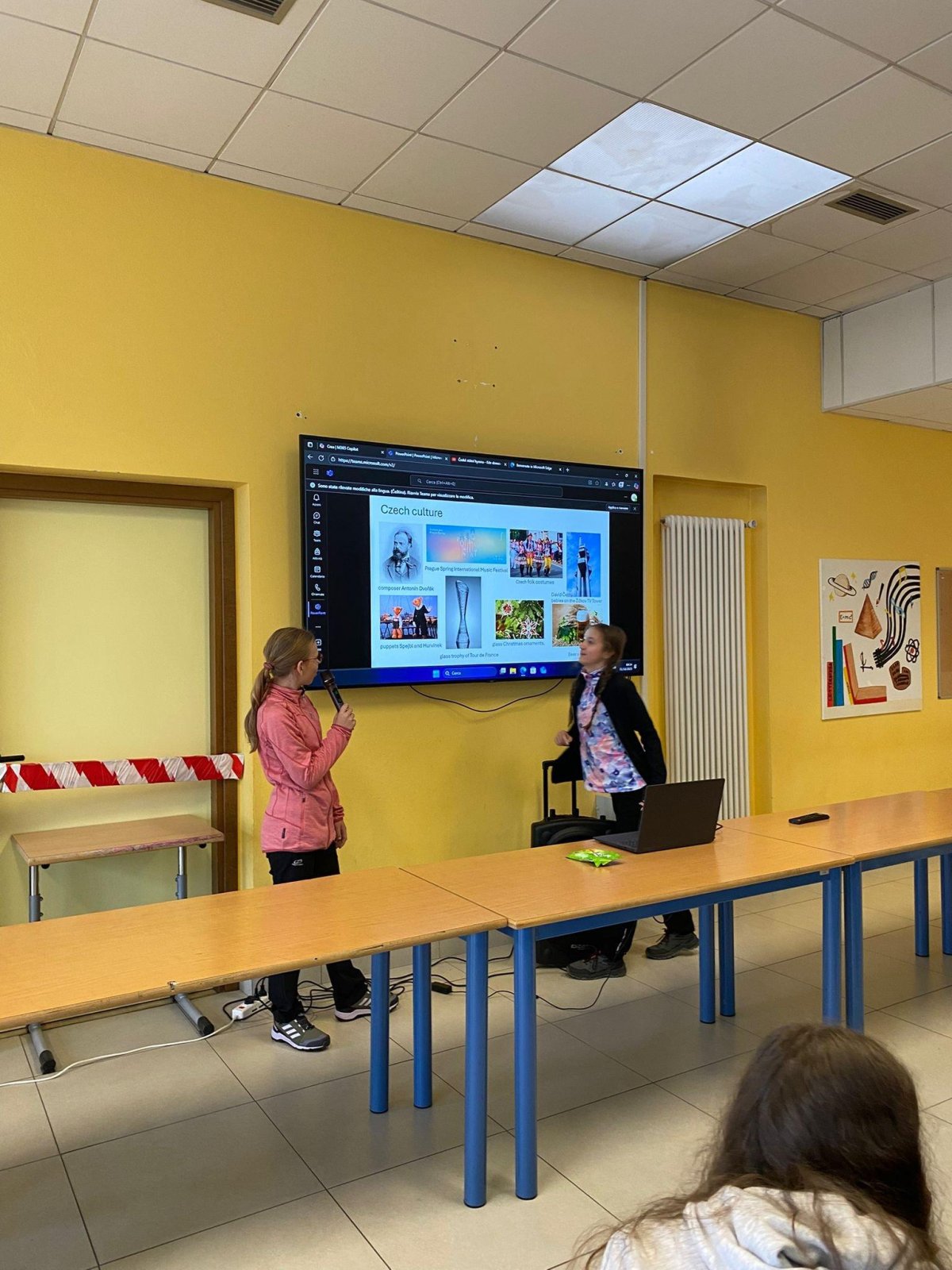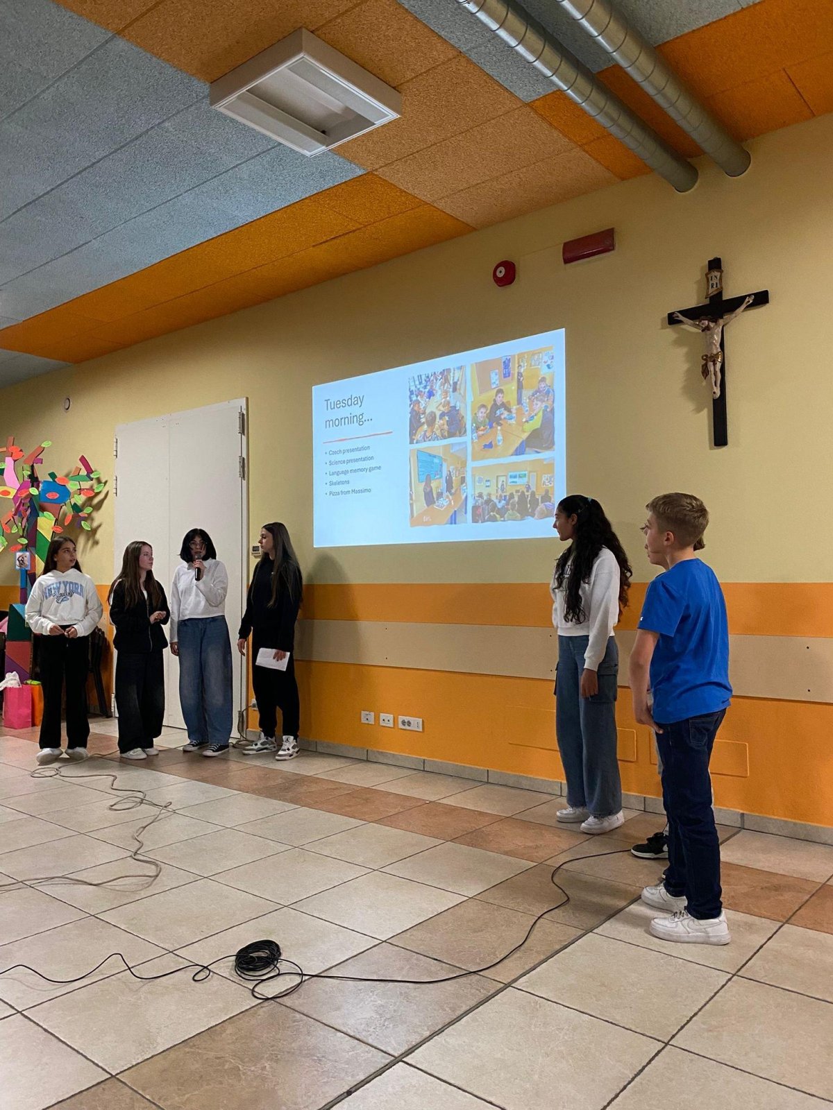 Dopoledne představili naši žáci Českou republiku, město Ústí nad Labem i naši školu. Italští kamarádi nám zase ukázali, jak tvoří své přírodovědné projekty. Společně jsme pak porovnávali čtyři evropské jazyky – angličtinu, italštinu, češtinu a němčinu. Smíchu bylo dost, protože čeština dala našim italským přátelům pořádně zabrat!