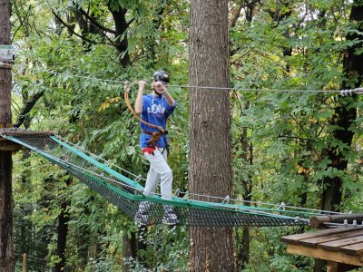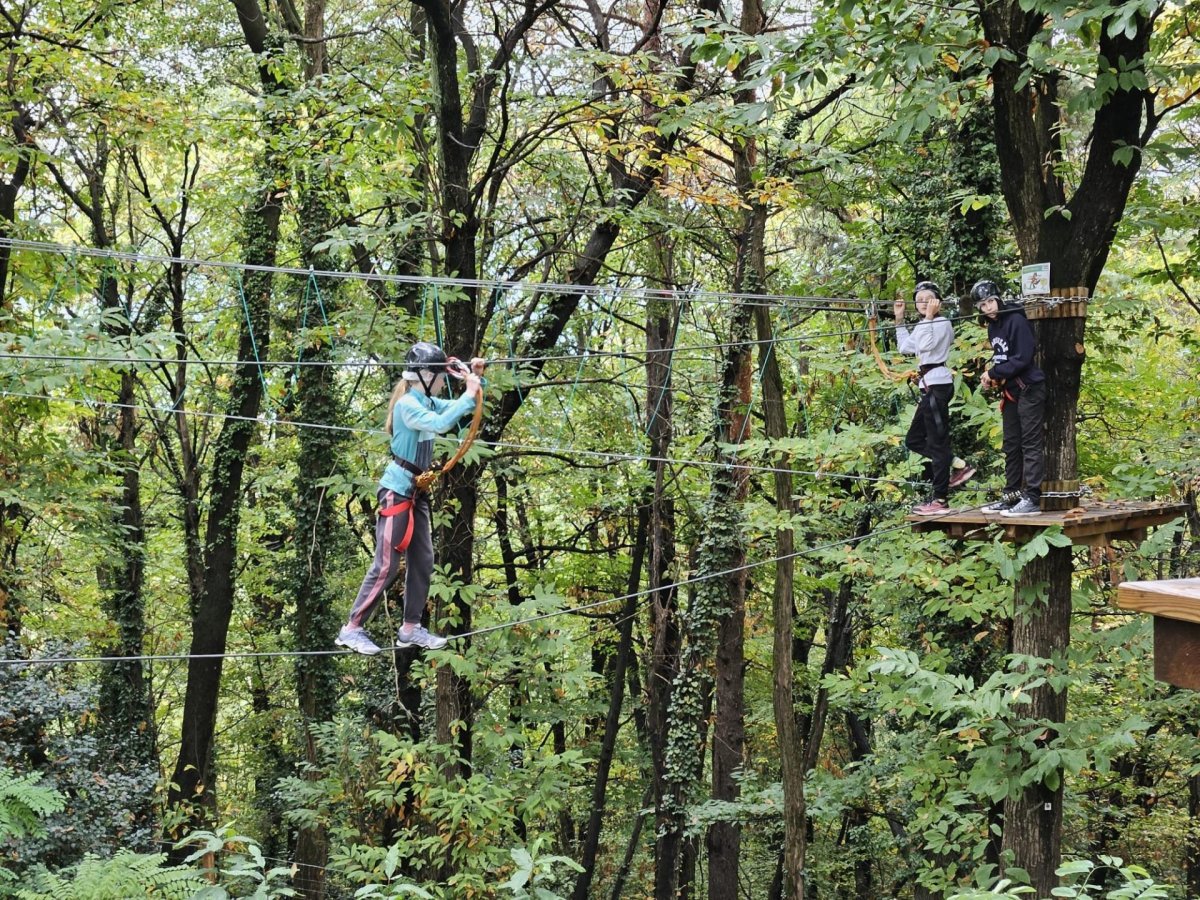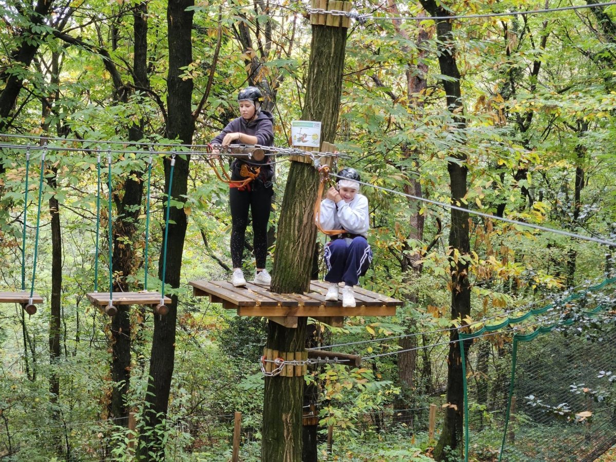 Odpoledne přišla odměna – nejlepší pizza našeho života (podle Matyho ) a poté výlet do lanového centra Wonderwood Adventure Park, kde si všichni vyzkoušeli odvahu i týmovou spolupráci v krásné lombardské přírodě.