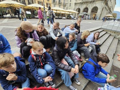 Po bezproblémové cestě letadlem nás v Bergamu přivítala usměvavá paní učitelka Lola, která se postarala o náš hladký přesun do Uggiate. Tam na naše žáky čekali jejich italští kamarádi, se kterými strávili odpoledne.