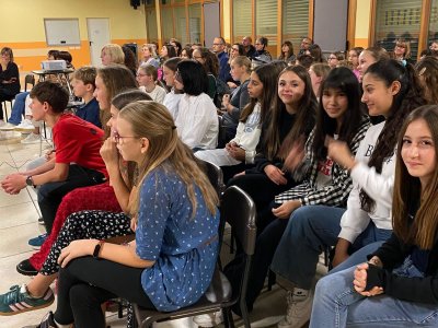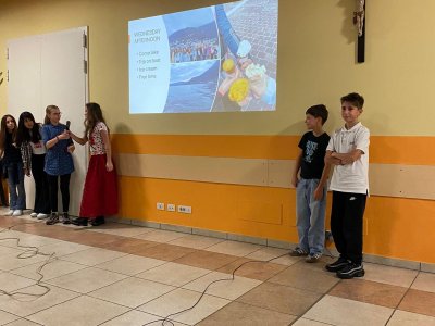 Čtvrtý den jsme pracovali ve škole na závěrečné prezentaci. Tentokrát v česko-italských týmech. Výsledek práce pak jednotlivé skupiny představily v angličtině a italštině před plným sálem italských rodičů a učitelů. Následně nás čekala společná závěrečná večeře a dojemné poděkování italským rodinám za jejich neuvěřitelnou pohostinnost.
