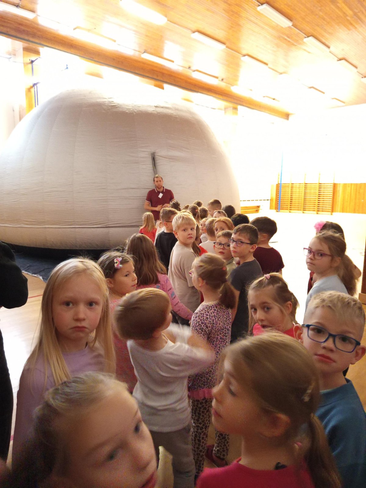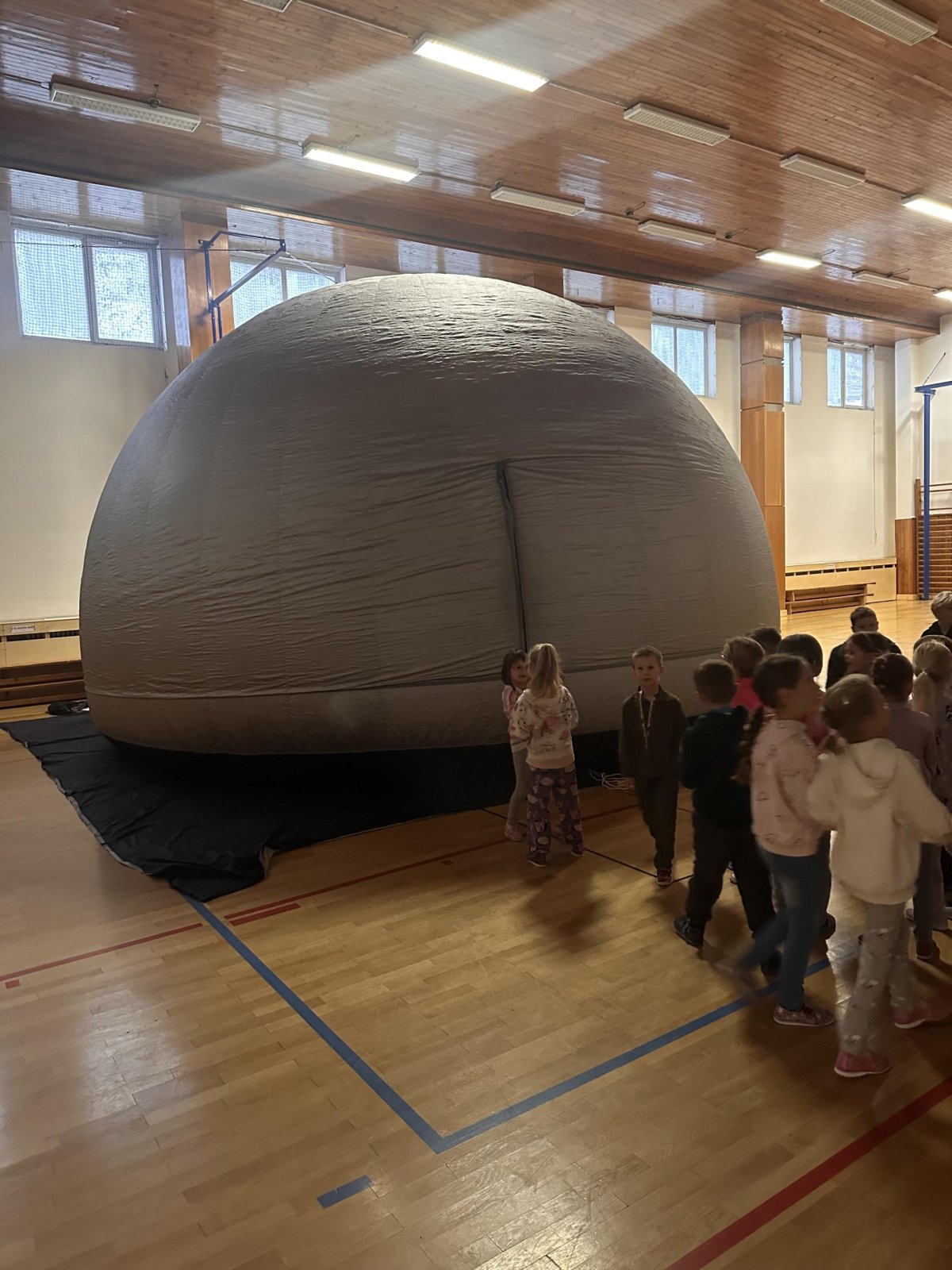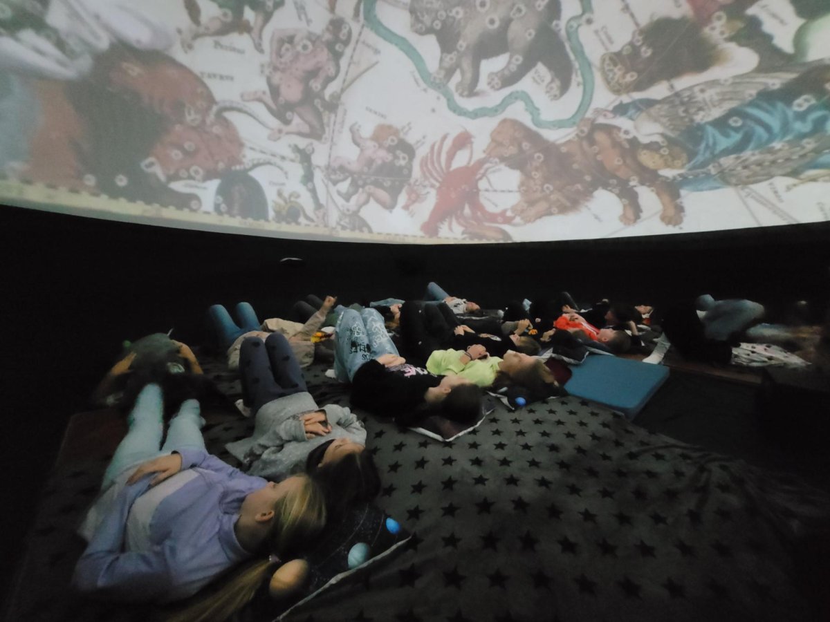 Ve středu 12. a ve čtvrtek 13. listopadu 2025 měly děti z prvního stupně jedinečnou příležitost zhlédnout vzdělávací filmy v pojízdném planetáriu. Projekce probíhaly přímo ve škole, kde nafukovací kopule vytvořila atmosféru skutečné hvězdárny.