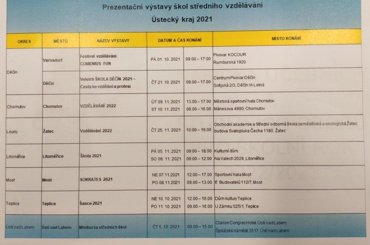 V úterý 5.10.2021 se žáci 9.ročníků v doprovodu svých třídních učitelů zúčastnili Miniburzy středních škol pořádané letos netradičně v prostorách Clarion Congress Hotelu. Na této akci koordinované zaměstnanci Úřadu práce si budoucí středoškoláci prohlédli stánky středních škol a zaměstnavatelů v Ústí nad Labem a využili možnosti pohovořit si se zástupci vystavovatelů.